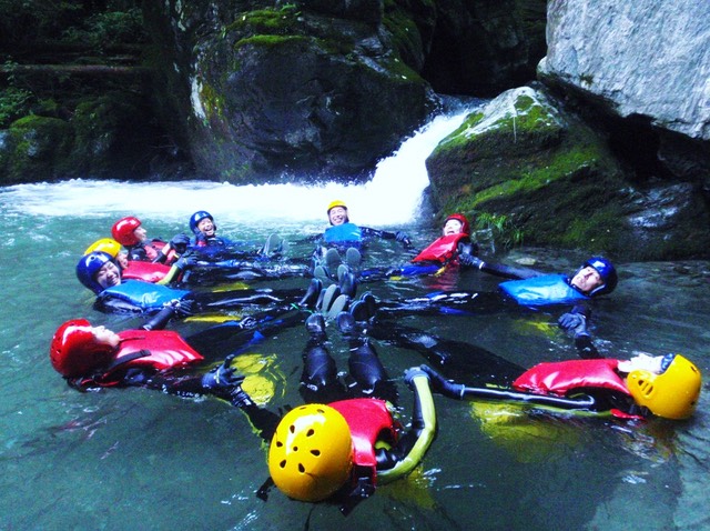 みんなでわいわい滝滑り沢遊びを楽しもう!